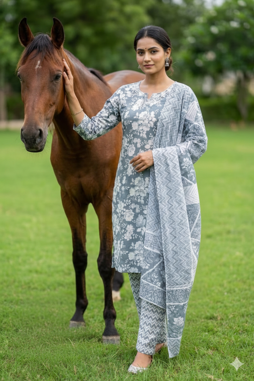 A comfortable and stylish daily wear suit crafted from premium silk with attractive digital prints. Ideal for casual wear, office use, and daily outings.